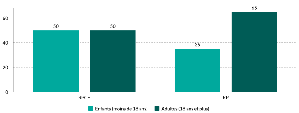 * En 2020, la Syrie est le premier pays de naissance des personnes réfugiées réinstallées au Québec pour chacune des catégories, soit un quart des RPCE (23,4%) et la moitié des RP (50,7%). Hormis la Syrie, les pays de naissance des RPCE sont principalement des pays africains tandis que les pays de provenance des RP sont principalement des pays du Moyen-Orient et d’Asie Occidentale.
