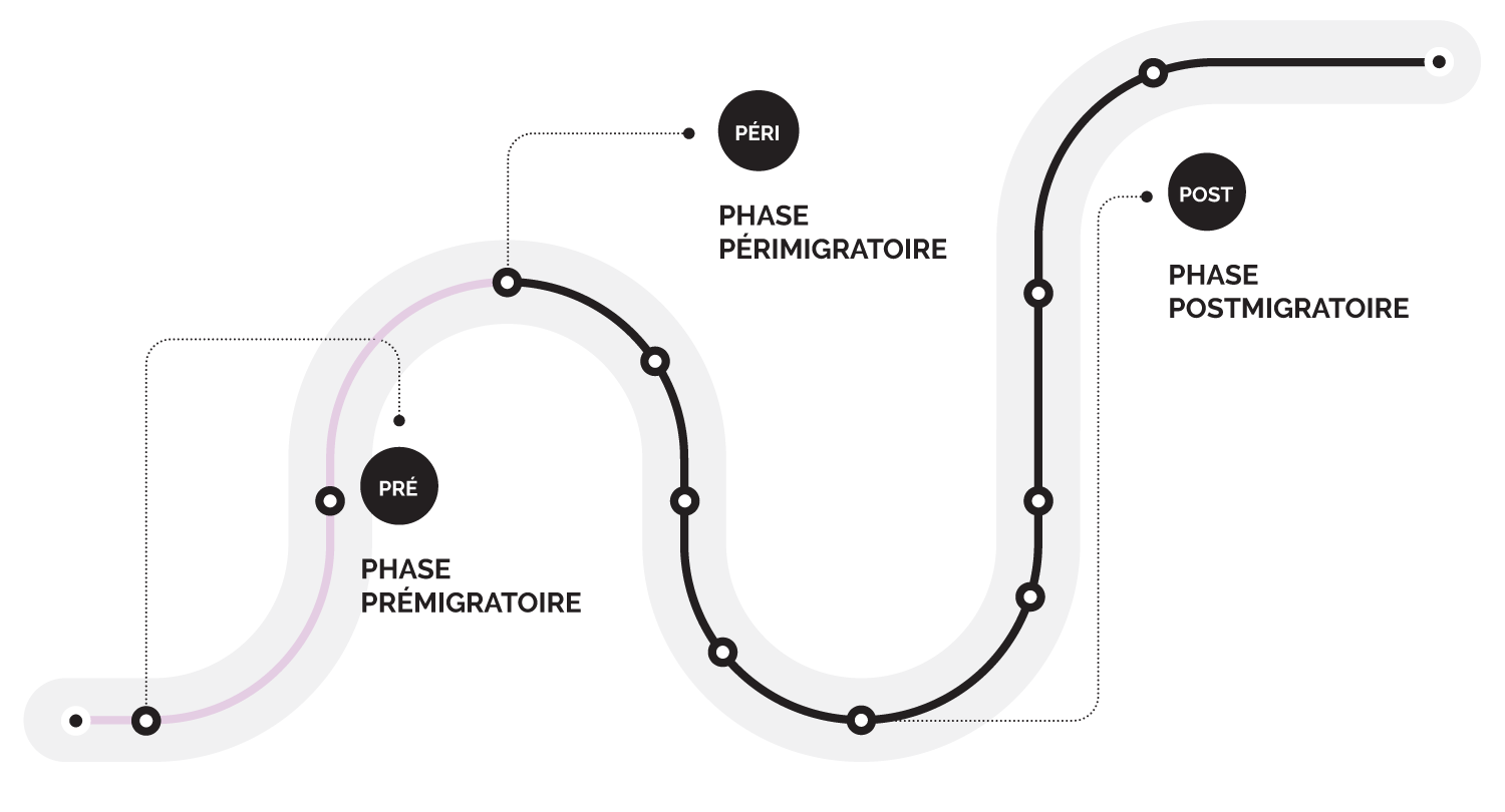La phase prémigratoire fait donc partie de l’histoire de la personne et elle contribue à expliquer ce qui a pu déclencher la démarche d’exil pour celle-ci. Pour certaines personnes, les stresseurs vécus pourront se perpétuer lors de la phase périmigratoire.